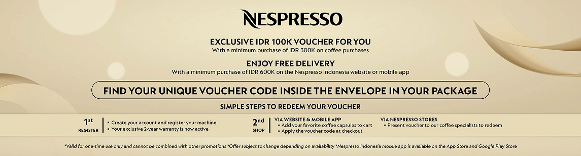 Begin your Nespresso journey in just a few easy steps. Completed Register your machine and enjoy 2-years warranty. Redeem your IDR 100K voucher and explore our favorites coffee. Register your machine and enjoy 2-years warranty.